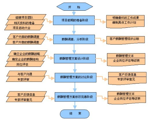 对企业战略分析、薪酬总额控制分析、薪酬激励性分析、薪酬水平分析、内部公平性分析等对企业薪酬管理进行系统诊断。通过薪酬管理诊断设计基于战略的薪酬体系。包括制订薪酬政策、进行工作分析、进行岗位评估、市场薪酬调查、确定薪酬结构、根据外部薪酬调查数据和企业内部纵向薪酬结构以及公司具体情况确定各岗位薪酬具体金额,进行薪酬政策的宣贯和沟通以实现平稳过渡。