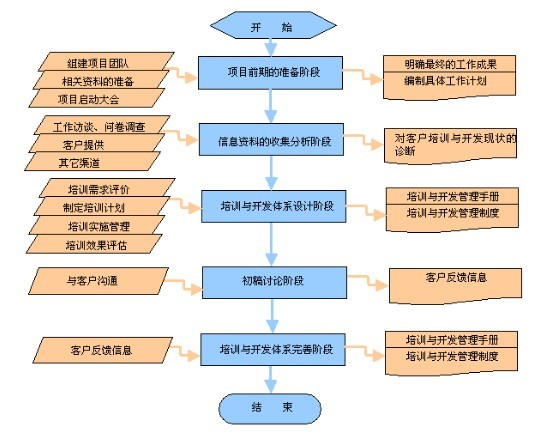 为企业进行培训与开发体系建设。帮助企业制定中长期培训与发展规划,设计培训流程体系、培训课程体系、培训评估体系、培训保障支持体系等,帮助企业员工获得改进与工作有关的知识、技能、动机、态度和行为,进行有计划的、有系统的各种努力,以实现企业与个人的共同成长。